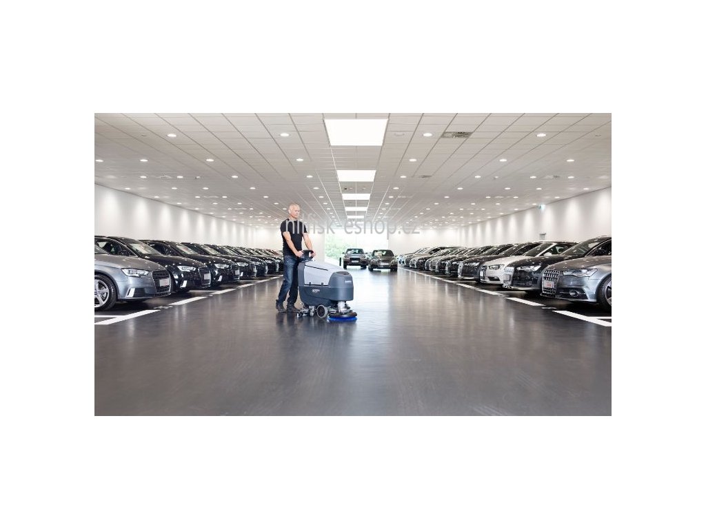 Stroj disponuje výkonným kartáčovým motorem o výkonu 450 W a sacím motorem o výkonu 280 W, které zajišťují rovnoměrné a efektivní čištění i silně znečištěných ploch.