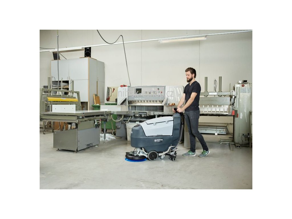 Díky pracovnímu záběru 430 mm a šířce stěrky 720 mm dosahuje Nilfisk SC401 Li-ion teoretické produktivity až 2 150 m² za hodinu, reálně se běžně dosahuje kolem 1 290 m²/h.