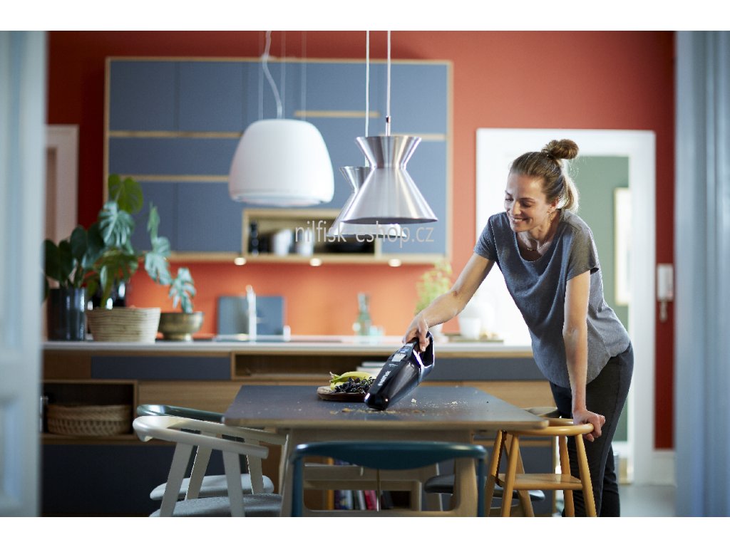 Chcete-li zahájit menší úkol čištění, jednoduše stisknutím tlačítka vyjměte integrovaný ruční kapesní vysavač Nilfisk Quick Cleaner. Nyní můžete