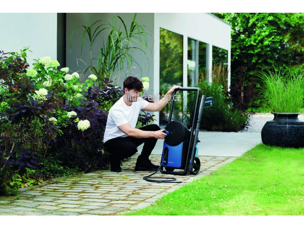 - Vnitřní naviják hadice – hadici snadno navinete a uložíte uvnitř stroje, zabráníte zauzlování a šetříte čas