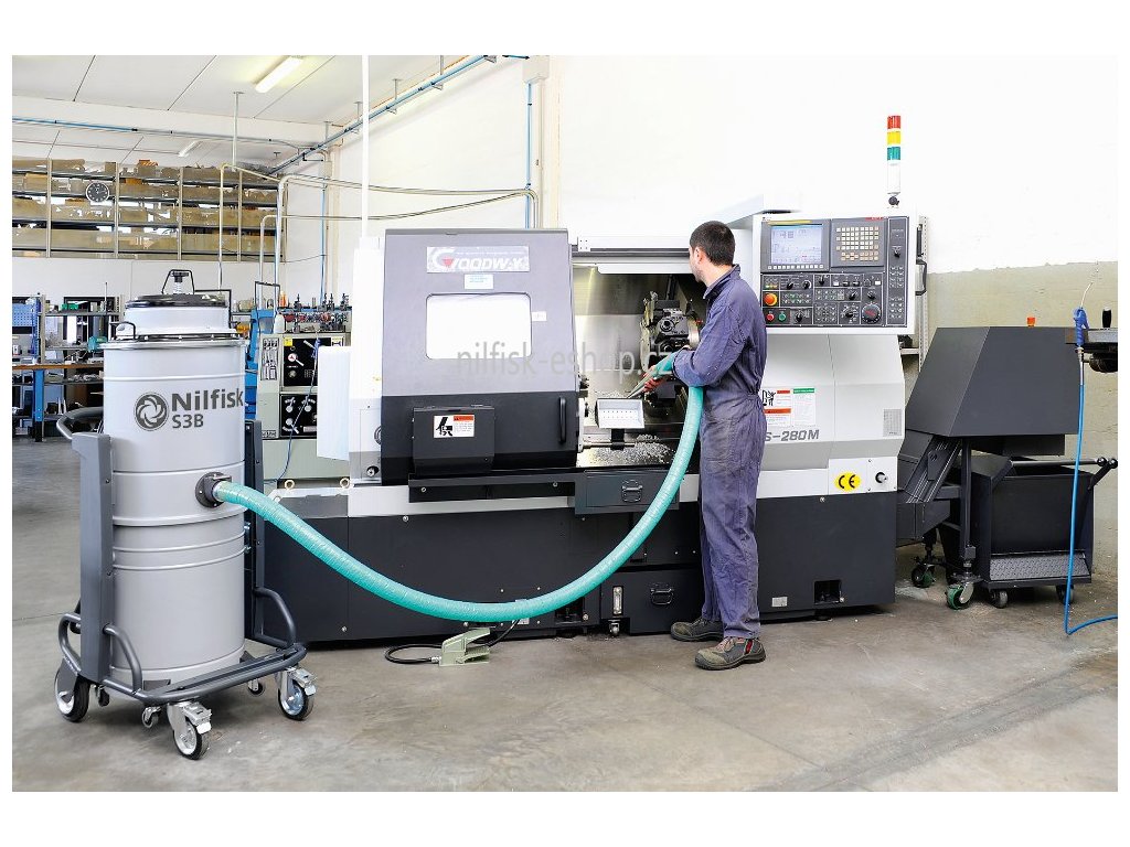 Průmyslové třífázové vysavače třídy T jsou mobilní vysavače pro vysávání kapalin a pevných částí v průmyslu, strojírenství a jiných náročných provozech. Jsou vyrobeny z kvalitního materiálu s odolným nátěrem. Manuální oklep filtru zajišťuje vysokou účinnost filtrace po celou dobu práce. Pákový systém uvolnění odpadní nádoby umožňuje její snadné vyprazdňování bez nutnosti demontovat jiné díly vysavače.