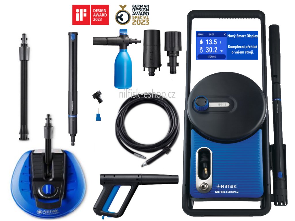 Kvalitní vysokotlaký čistič s maximálním tlakem 180barů a dlouhou hadicí Steelflex s ocelovým opletem 12m. Zajišťuje pracovní výkon až 60m².Tento model také podporuje možnost použití vody z volného zdroje (samonasávání). Obsahuje v balení navíc Power Patio (Patio Power)